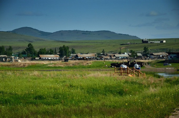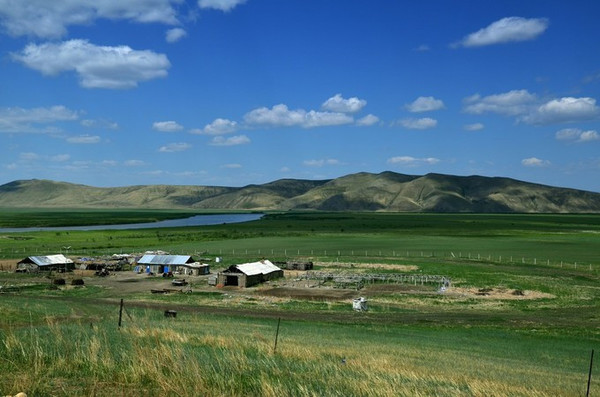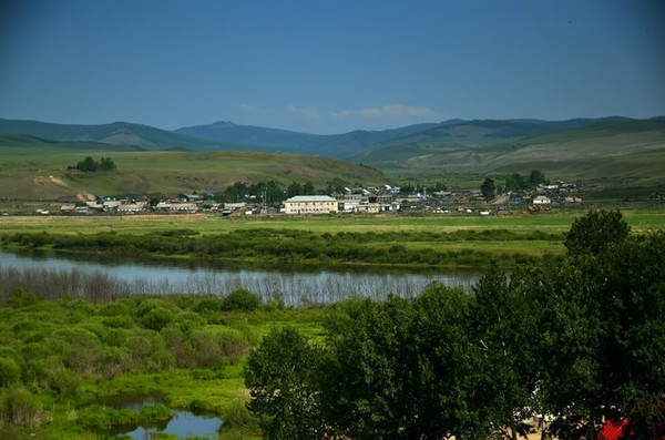 公路继续在草原上蜿蜒,远远的,出现了一片村落,那就是全国唯一的 俄罗斯 族自治乡所在地 — 恩和 。
