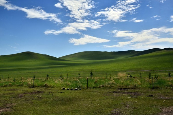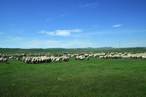 一路都是草场,难得的是这里的草生长的非常茂盛,没有坝上土地的那种贫瘠,草也没有那样的瘦弱,草把整个草原遮盖的严严实实。到处飘荡着牛群、羊群和马群,牧人也很少露面,任由牲畜们自由自在的生活,偶然,见到一个牧羊人,也是自顾自的悠闲。草原上,永远都是那种惬意的生活。