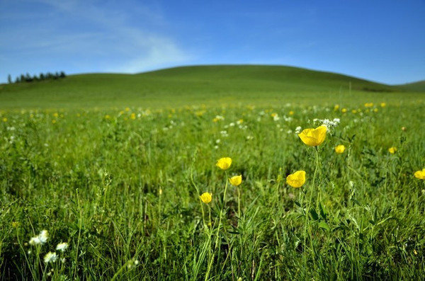 从 额尔古纳 出发,仍然是绵延的草原, 7 月,正是草原上百花盛开的季节,透过草原,花海的那一头,有村庄和牛群。我们被路旁繁华似锦的草原所吸引,停下车来,走进花海中,去享受花的芬芳。酷派和慕图雨天在花丛中仔细的寻觅,专门挑拣那些漂亮的花朵,不大一会儿功夫,手中已经是姹紫嫣红了。