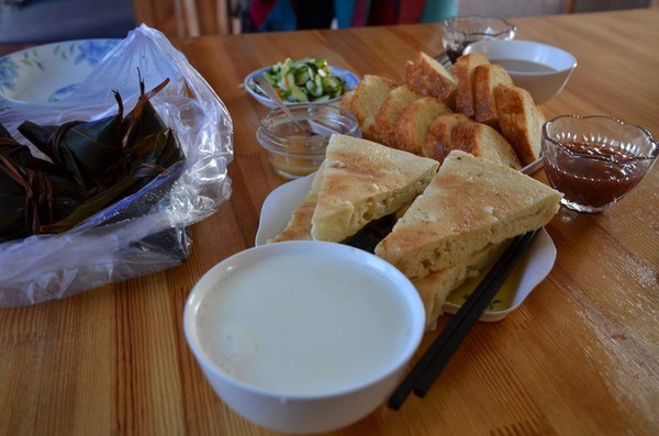 后勤的同志准备得很周到,不仅有油饼、熏鸡、松花蛋、小菜,还有西瓜、黄瓜、西红柿和水蜜桃,掀起车后门,就是很好的遮阳棚,微风吹拂,真有点神仙的感觉!
