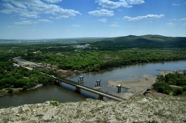 一座“ 友谊 桥”横跨在 额尔古纳 河上,旁边的草地上,一块木牌上书写着“中俄第一桥”五个大字,心里百思不得其解,难道中俄的界河上只有这一座大桥吗?回来查找资料,还真是这么回事。