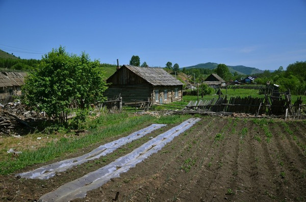 一个村子出现在我们的视野中,一色的木楞房,有的用铁皮铺就的屋顶,更多的,则是林区最不缺的木片。稀稀的散落在一片村落中,有的用白桦树的身段围就的围墙,有的则干脆横七竖八的用几根木头捆绑一下,象征性的表示主人的“势力范围”。这就是有名的下护林了,我们顺着村中的一条土路,拐到了一个风景如画的河边,那里,就是我们今天午餐的地方。