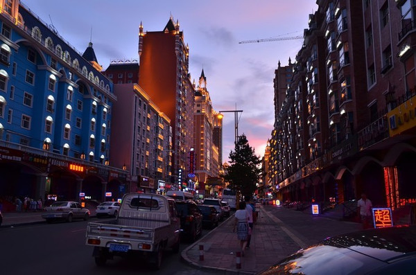 大雨刚停,远处的乌云依然黑压压的,我们走出广场,不远处,俄式建筑在雨后更显得鲜艳。