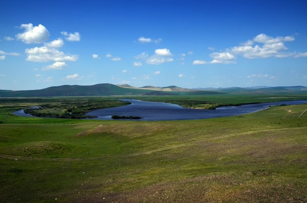 金帐汗被认为是 呼伦贝尔 草原最美的地方,更吸引人的是 莫尔格勒河 在草原上蜿蜒的身影,那个被称作九曲的地方。我们寻找最高的山头,爬上去,可以俯视四周,但还是太低,根本看不到九曲的模样。