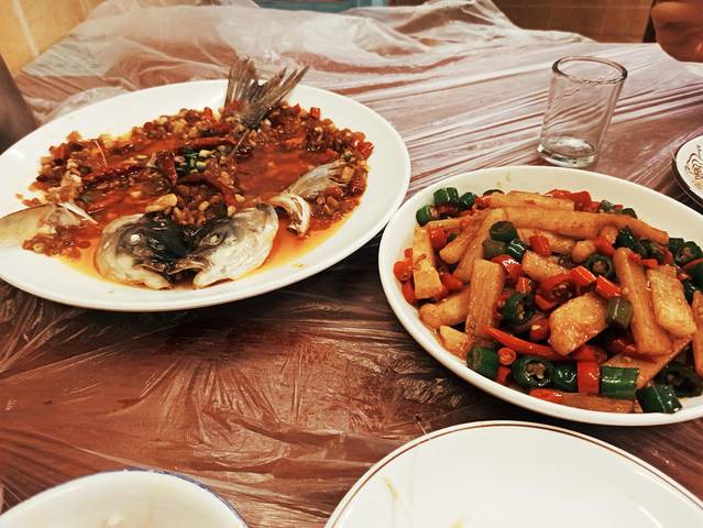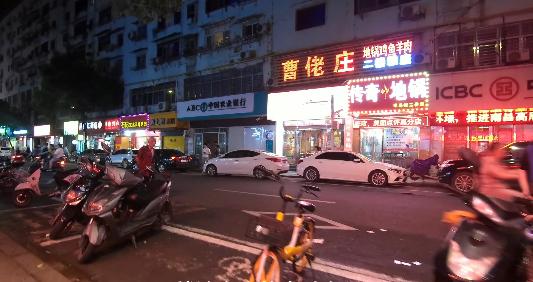 环境就是非常居民楼的状态,人很多,服务不算很好也没有很差,我们点了一个油浸鱼一个红烧山药,这个油浸鱼真的非常好吃,上面一层应该是酸萝卜,酸甜酸甜的,这个鱼本身也是比较鲜甜的味道,这个红烧山药也是一种很香辣的感觉,油浸鱼是48红烧山药28块,餐具一套是一块钱,纸巾一块钱,这顿饭一共是79块,平均一个人40块钱的样子,回去的时候是散步回去的,南昌真的超多电动车,这个路边也是很繁华,很多小吃店。