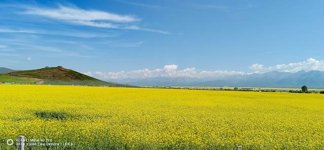 门源县是北方小油菜发源地,是全国乃至全世界最大的小油菜种植区,种植面积达50万亩。 每年一度的油菜花盛开,绵延数十里,沿途的山坡上、平坝中,真是金灿灿、黄澄澄铺满了大地。