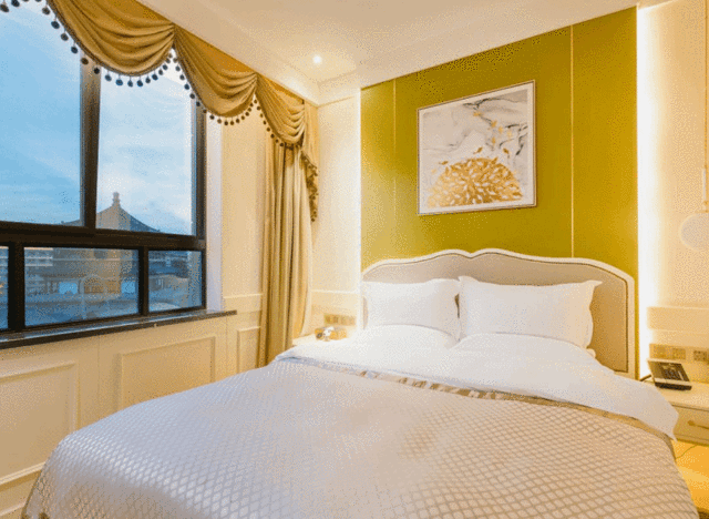 我们预定的是钟楼景观大床房,房间装饰的很豪华,包括硬装软装,房间的颜色搭配都很舒服。这个房间晚上可以欣赏钟楼夜景,很漂亮。
