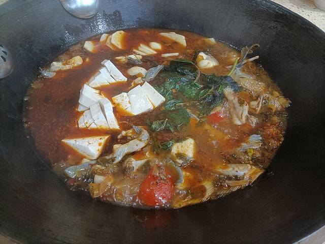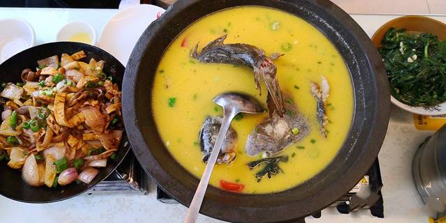 找了一家柴火餐厅,九点钟才去的,差不多要关门了,但是还是很热情的接待了我们,真的很有特色的一家美食柴火,用木柴烧火做的,点了柴火鱼,鱼现场捞出来杀,肉质很新鲜,还有很多配菜,放在一起煮着吃,哇塞,好吃,下面就是吃之前和吃之后的鲜明对比,战斗力拉满!
