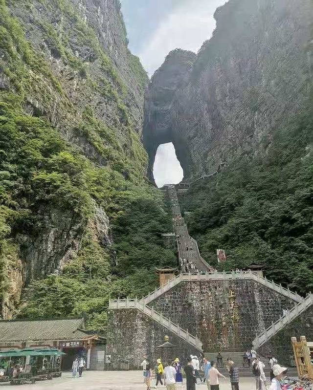 Day4去张家界天门山。天门山有1500多米高,不过超长索道一步登顶,爬山台阶不是很多,老人还是可以去走走的。订的A线票,早上8点多到大索道下站,人已经很多了,排了20分钟队坐上索道。到山顶后走最常规的游览路线,从西线玻璃栈道到鬼谷栈道天门山寺到东线玻璃栈道这里,穿山自动扶梯下到天门洞,走走停停用时6个多小时吧!另外现在a线票不是坐观光车走通天大道下山了,而是坐新开的一条索道,到天门狐仙剧场这里,再坐观光车回市区!然后坐车去凤凰古城