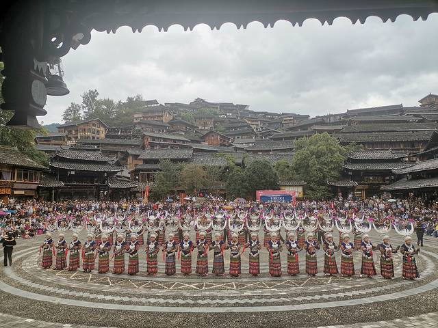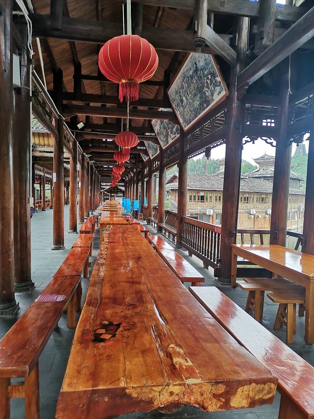 下面是旅游团体验苗族长桌宴的地方,趁着还没到中午拍几张照片。