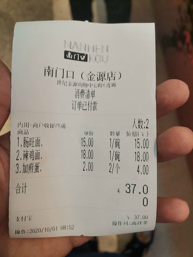 一碗肠旺面15元,开在金源购物中心商圈里,这价格算合适的了