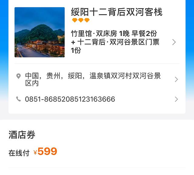 送了两张景区门票,送了三个人的早餐