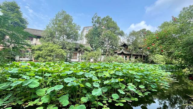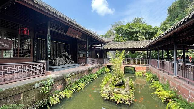 酒店用完早餐九点多打车去三苏祠,车程十几分钟。三苏祠在眉山的一条老街里。三苏祠里人并不多,早晨大多是当地晨练的人们。园子很大,环境很好,仿佛置身江南。如果有幸你可能能遇见“苏小喵”(虽然我们没有遇见),参观时长2个多小时。