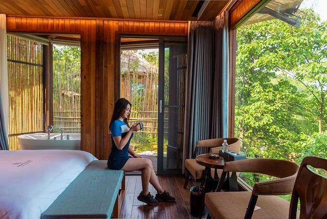 到了天桥仙居之后先办理入住,这里房型有木屋、全景玻璃屋、星空帐篷以及房车,选择多样各有其特色,我和同行妹纸商量了下选择了轻奢木屋。