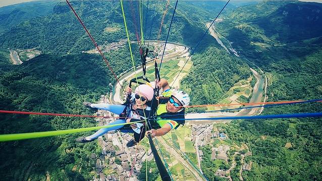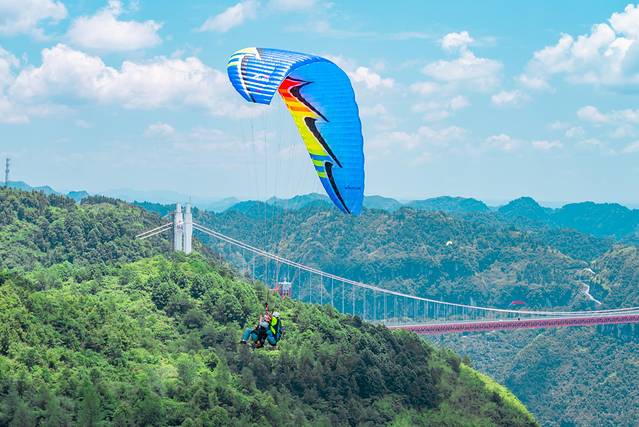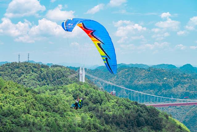滑翔伞上,飞跃世界最美悬索桥,观湘川公路最险关卡13道急弯;