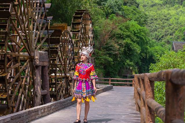 他们自己种桑养蚕,纺纱织布,手工织品巧夺天工。这里的人们还沿用古老的方法榨油、造纸、碾米、织布,用筒车提水灌田。小溪河旁,大大小小的筒车吱吱呀呀地转动,构建了一幅美丽的田园风光。