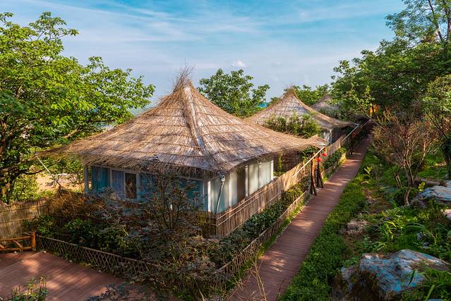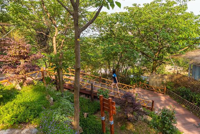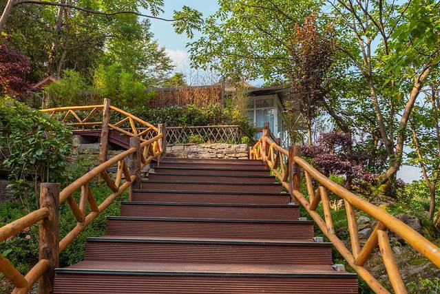 刚匆匆走过天桥仙居觉得环境还不错,午休之后不准备走远,先逛一逛整个民宿,了解一下也不错哒。整个仙居倚山而建,木质栈道被丛林掩映,行走其中很是凉快。