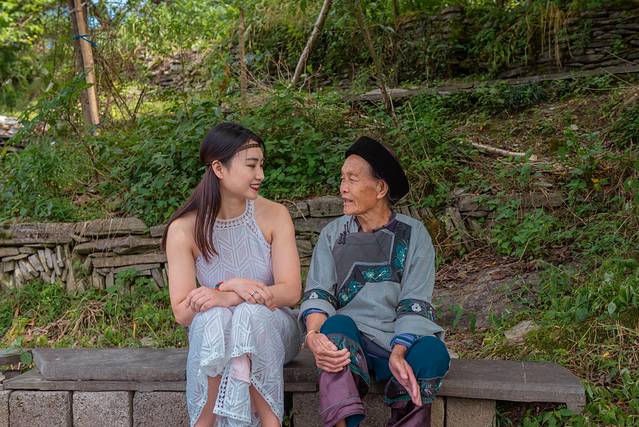 路边卖东西的苗家阿婆,听她讲述过去的故事,原来这吉斗苗寨曾经也是电视剧《婉君》的取景地之一!