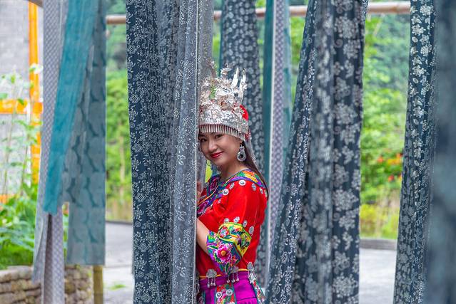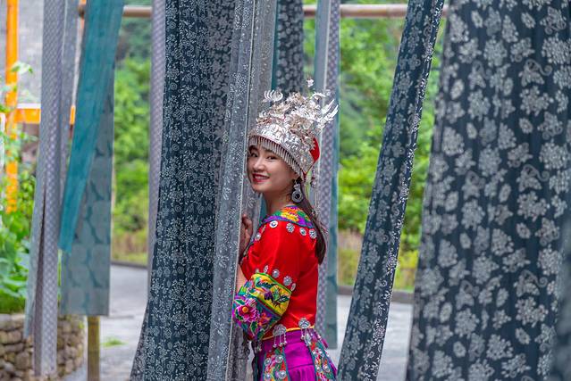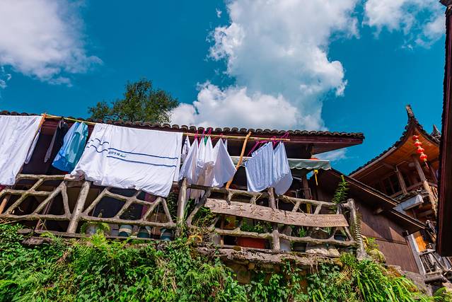 晾在这里的布,据说苗族的蜡染,每次看到都不由自主的跑进去挽着拍照,活像家里喜欢玩线团的小喵,也许这是本能??哈哈