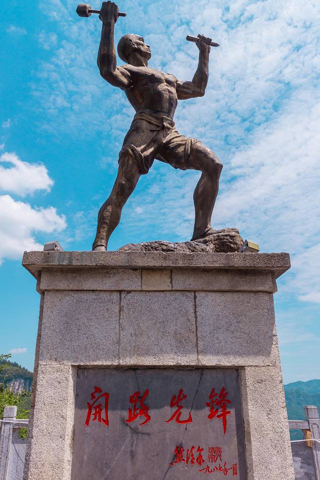 据史料记载,修筑这段仅六公里的公路,当年2000多人次民工栉风沐雨整整奋战了七个月,其中死亡200多人,小伤小残的不计数。为了追怀死难者的功绩,在临近坡顶的第一个回头弯耸立着湘川公路死事员工公墓纪念碑,彪炳日月,光照千秋。站在路边可远眺开路先锋铜像和矮寨大桥,俯视可见矮寨公路奇观的连续回头弯及中国第一立交桥。