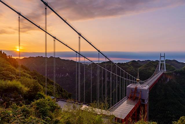 矮寨大桥位于湖南湘西州吉首市矮寨镇,是包茂高速(G65)跨越德夯大峡谷的一座特大型桥梁,2007年开工,历时五年完美竣工通车。
