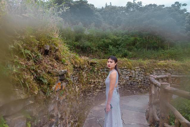 一大早专程过来拍寨子,完全不用着急,慢慢悠悠的沿着石板路往寨子里走,途中经过一座铁索桥,于是停下来拍照。