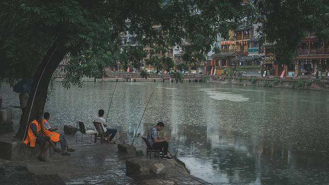 生活在沱江边的凤凰人,他们欣喜着在江边垂钓,一坐便是一天,哪怕并没有钓起来多少鱼,哪怕天还下着雨。
