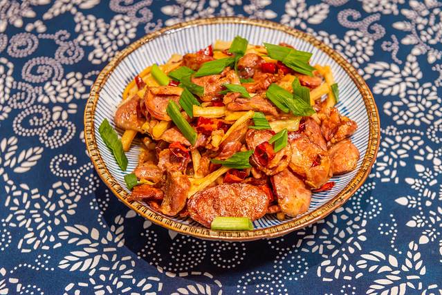 这个猪耳朵是烟熏过的,加上青红椒炒出来颜色特别好看,味道也不错哒。两大碗饭之后,看着满桌好吃的,只想出去跑一圈然后回来继续吃,嗯哼,我可以的!