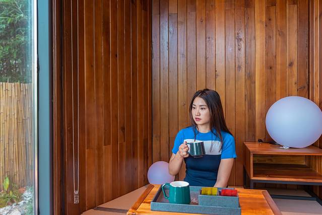 推开小院子的木门,一座精巧的小木屋出现在眼前,看,就是这一座。进得门来,才发现看起来小巧的木屋其实不小,里面配备了茶室,机麻,投影仪和浴缸,真是棒棒哒。