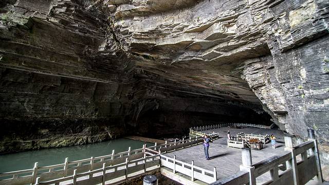 奇梁洞旅游风景区位于 凤凰古城 以北的奇梁桥乡,吉凤公路左侧,票价60元/人。翠翠说,这里有一个最神奇的地方,那就是河水倒流。