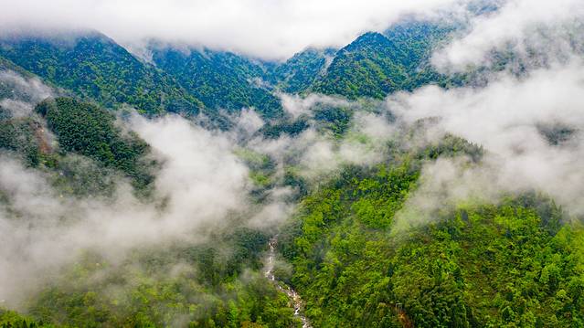 古老的村落、潺潺的溪水、青青的绿树,还有那云雾妖娆的犹如仙气般的雾气笼罩着整个大山的景象让这里看似很平凡的地方变成了天上之人间、人间之仙境。