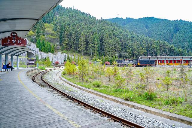 差点忘了说了,在青云崖景区,还能体验到大陆第一的高山观光小火车,这也是来到明月山必打卡的体验项目之一。对于景区而言,小火车其实并不算罕见,但是在1500米的高山之上的小火车,我之前从未听过,更不用说体验过了,因此这次来之前就无比的期待。想要乘坐观光小火车,首先需要乘坐几十米高的垂直电梯降落到站台的位置,它可以直接前往羊狮幕景区。