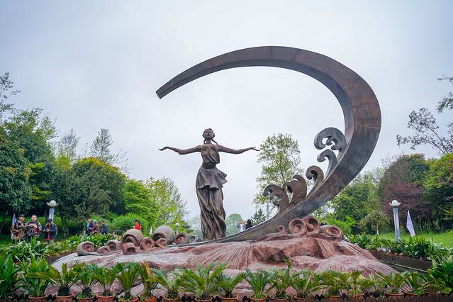 刚到景区门口附近,就可以看到一尊巨大的多面嫦娥造像,与宜春山水融为一体,是江西大地真善美儿女的化身。气势恢宏一下就吸引了我全部的注意力。验票进门一定要关注入口的演出时间表,除了固定的《明月千古情》和《大地震》的演出,每天其他的演出时间会稍稍有些调整,可别记错了时间错过了精彩的表演。