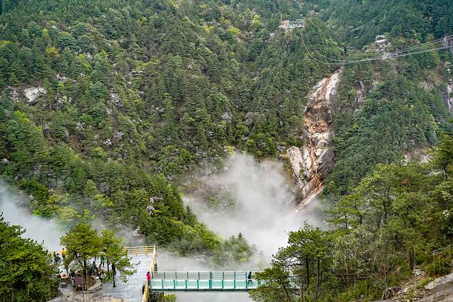 想要到达青云栈道,首先需要经过星月洞,星月洞是一个天然形成的石洞,因为洞内常年星光闪烁,故名星月洞。从星月洞出来,只见一座玻璃桥横跨在深谷之上,看着就非常刺激。