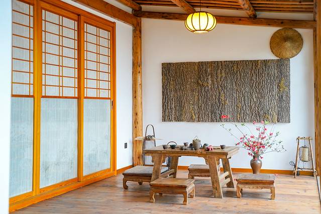 听民宿的老板说,他在修旧如旧融合文化方面,注重古村落保护与开发并重原则,室外维持老宅外墙原貌不变,室内按照星级宾馆标准进行装修,达到屋外有景,屋内温馨。同时,将当地的红色文化、知青文化、古建筑文化和农耕文化融合到度假村中,保留原有乡村风貌和乡愁韵味。