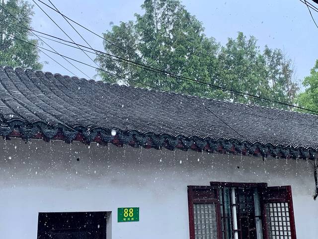 我是由于距离不远选择的它,而且我游古镇呢比较喜欢离开它的主道去周边的居民区也好,自然、村落也罢,去到这些地方走走看看,所以我那天呢,在一个小巷子里,听了一场雨,时间不长,但就静静地站在此处,放空一切地听着雨水与房瓦合击出的旋律,就很棒。雨过天晴,在镇中晃悠了一会,然后顺着巷子离开主干,便来到了一处废墟,感受着它剩余的时光,拍了几张照片。出废墟后,看着两岸湿漉漉的柳树随风起舞甚是清新,便继续顺着这条道道走下去,邂逅了几条古桥、几处隐居一隅、自给自足的古宅、还在某处树林下听着自然的大合唱,摆了个躯壳阵。