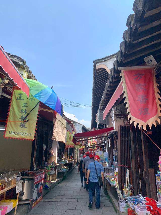 除了这些,古镇里还有:酱菜、果干蜜饯、肉皮、粽子、海棠糕、葱油饼、汤团、酒酿、山楂糕、黄鱼饼、鲜肉月饼等等江浙一带比较常见的东西。这儿还有两家挺火的店:屋有鲜(吃汤包的)、青桔一碗面(对,吃面的)。不过这些我都不感兴趣,有兴趣的同学可以去去...