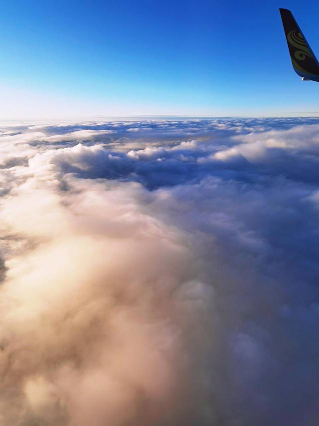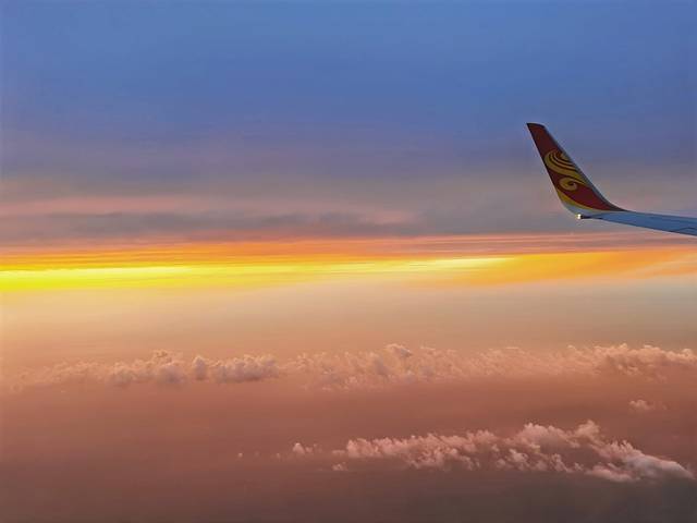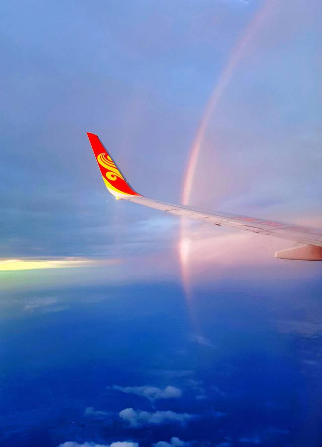 飞机上遇到夕阳西下,遇到了彩虹,看到了晚霞,预示着美好的一天就要开始了: