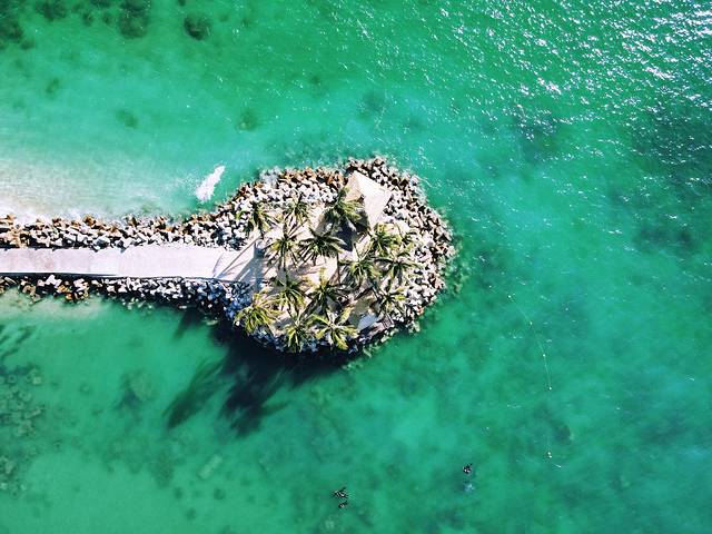 他们拍的航拍能用,水下照片真的拉跨……建议自己租GoPro水下相机拍吧,也可以自己带大疆飞机,这里已经可以飞了。