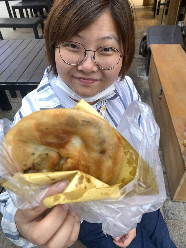 一直在排队的牛肉沙葱饼,吃的太饱了,三个人吃了一个,哈哈哈