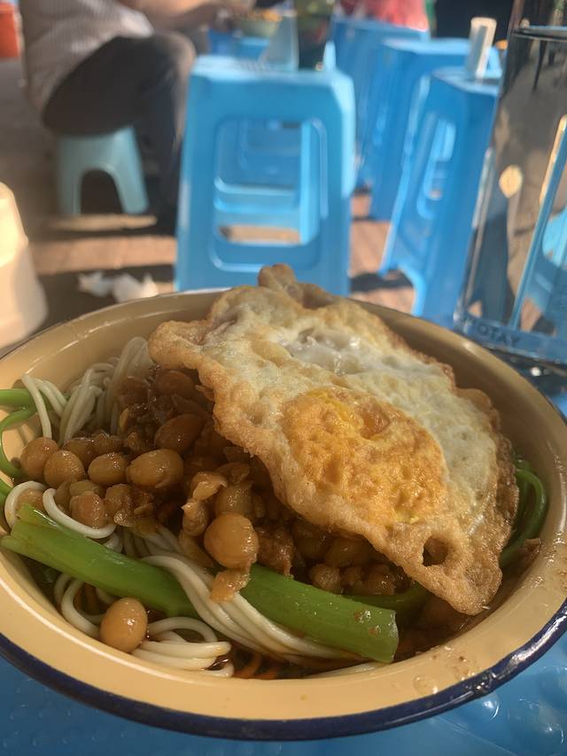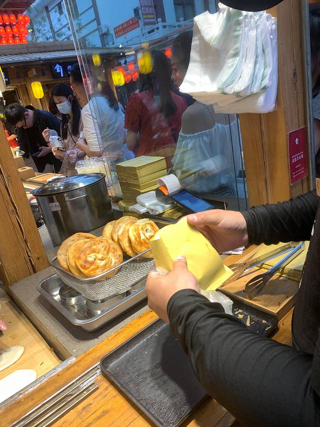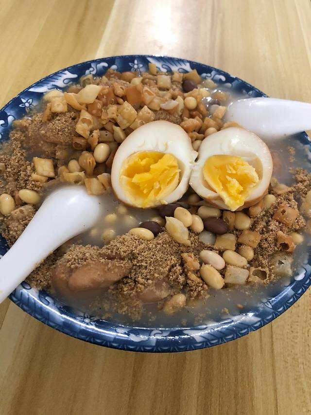 8点钟油茶麻花就已经拍老长的队了,老板娘坚持跟每一位顾客介绍吃法,要延碗边吃,不要搅的太过,认真负责的态度也是他家这么火爆的原因之一吧。我们两个姑娘要了一碗大份的,包含两根麻花一个溏心蛋,感觉吃饱了,第一次吃这东西黏糊糊甜丝丝咸溜溜,实在不好形容,唯一可以说的是现在在写游记的我又想吃了。