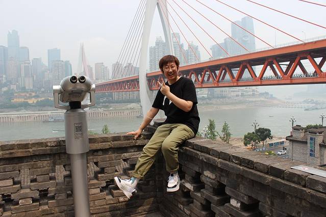 转战下个景点,坐轻轨去的,没来之前觉的挺好玩的,来之后觉得很失望,没什么意思,没什么感觉,就是能看见长江跟长江大桥。