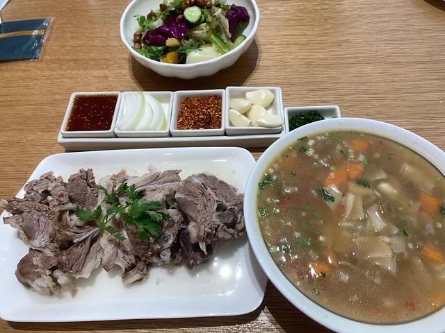 逛完鸣沙山,去酒店附近吃饭饭就要飞西安了,这家也是吃把羊肉的,用的是脊骨,不如焖面家羊排好,但是服务是真好,就在夏家合汁旁边。