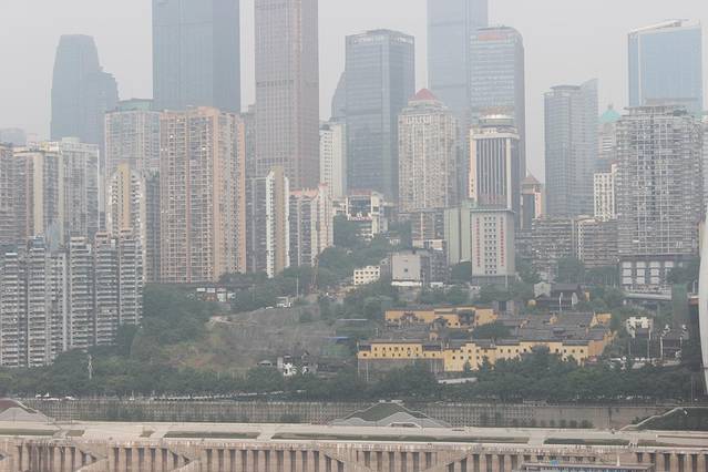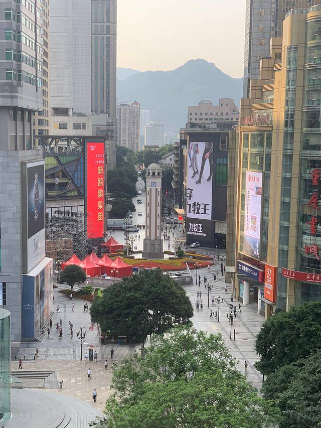 我们住的酒店上拍的,那个高高的就是解放碑