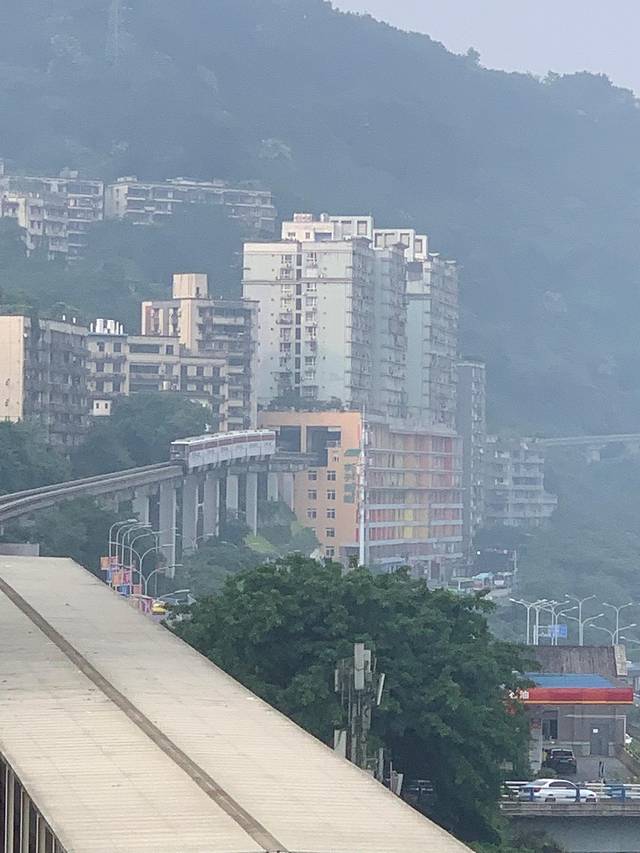 路上坐轻轨的时,换乘等待中,无意间拍到的穿楼景点之一。这一站是李子坝站,如果有时间的朋友可以到下面去拍一些自己喜欢的照片,我就选择不去了,反正已经看到了。
