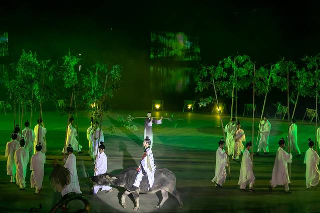 比武之余,各个门派也都展现着各自的独门武功。丐帮的打狗棒、摩尼的异域风情的舞蹈、各路剑法、拳法一一呈现,让人目不暇接。古墓派的轻功,在绳子上睡觉,将大家重新带入到了杨过与小龙女第一次相间的时刻。唯一可惜的是,表演的是位男士,小龙女只是在一旁吹笛助兴。