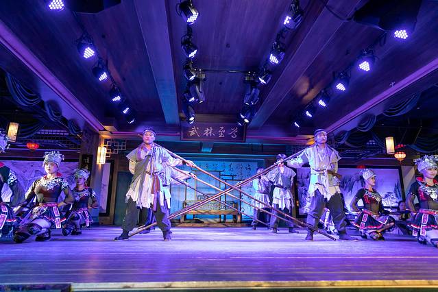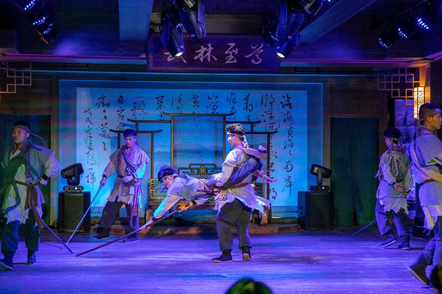 来东方盐湖城,一定不要错过一场“江湖盛宴”。这是一个有关于武侠主题的餐饮美食加表演互动的体验。