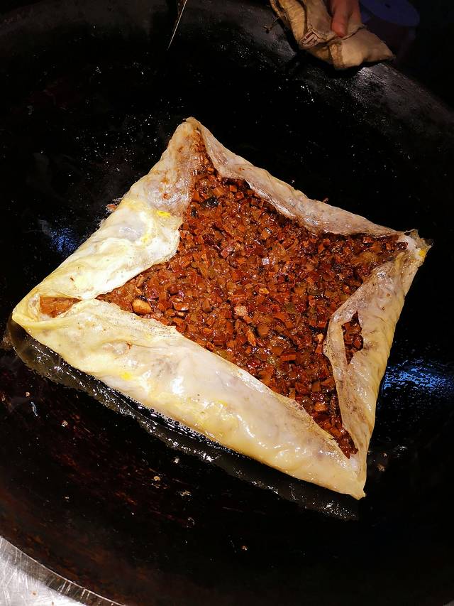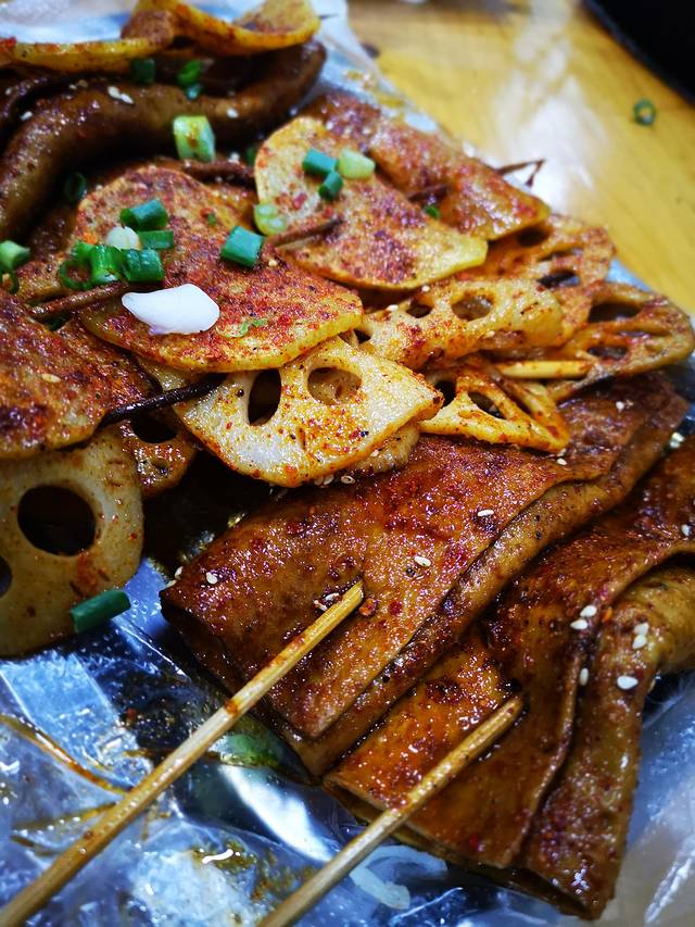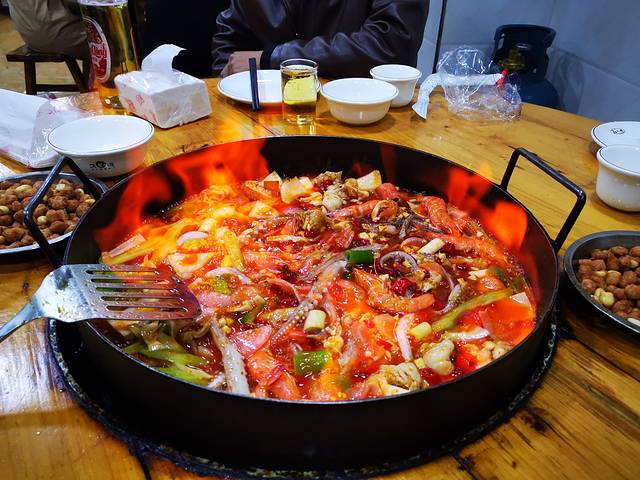 锅里浇火,瞬间香气四溢,烧烤麻香焦嫩。