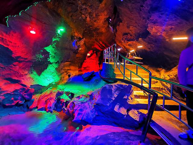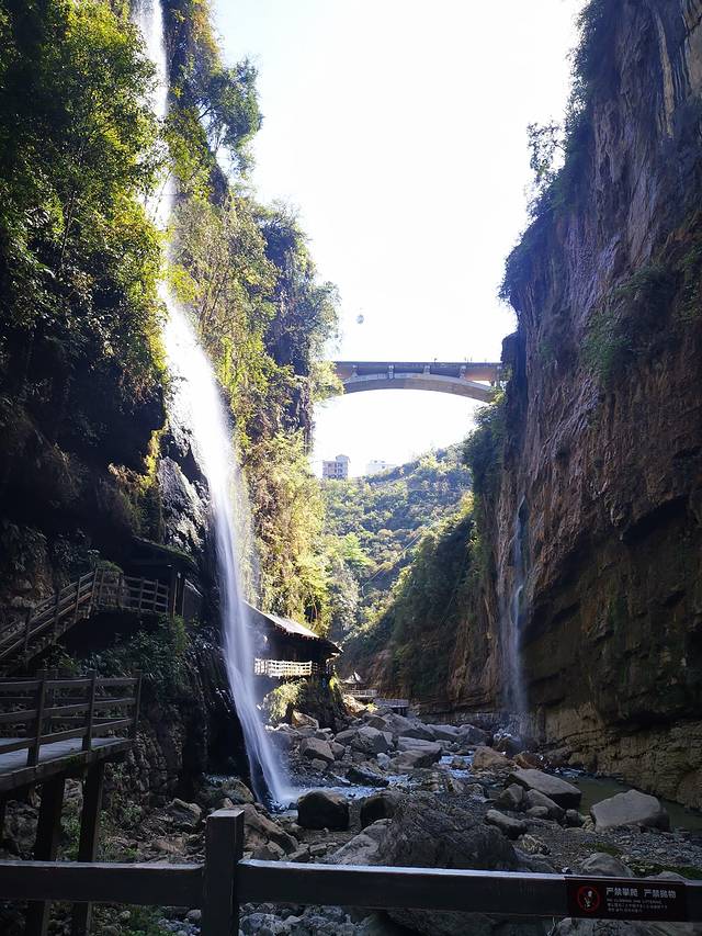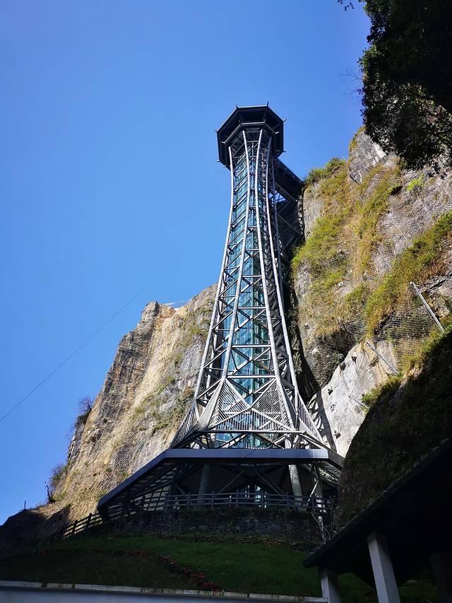 坐完电梯上来,以为可以直接到景区停车场,没想到啊,