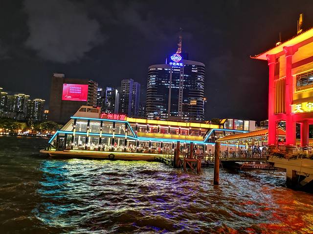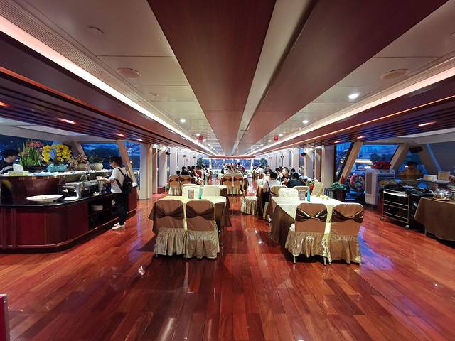 我们选择的是18:50 ,90分钟时长票价118元船头的1楼位置。中途回到码头接19:15分的游客后开往小蛮腰后回头。包含小水果,小零食,还有咖啡随意续杯。